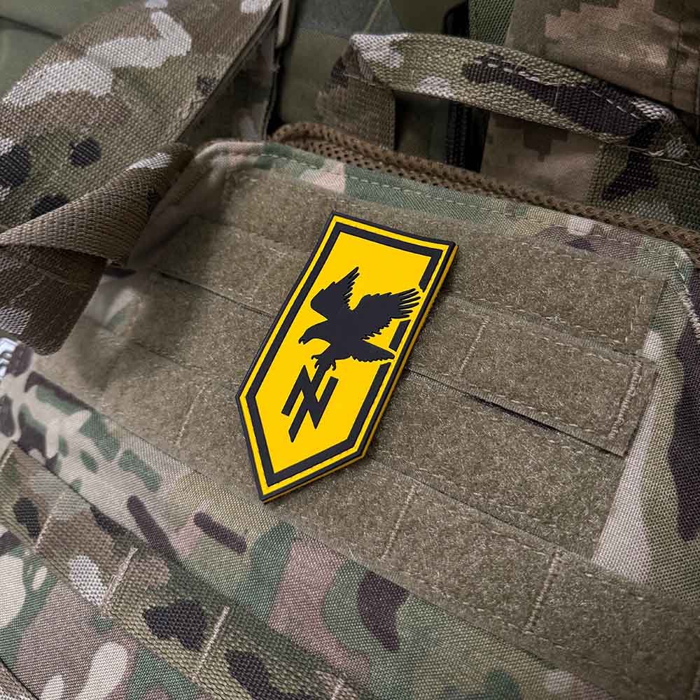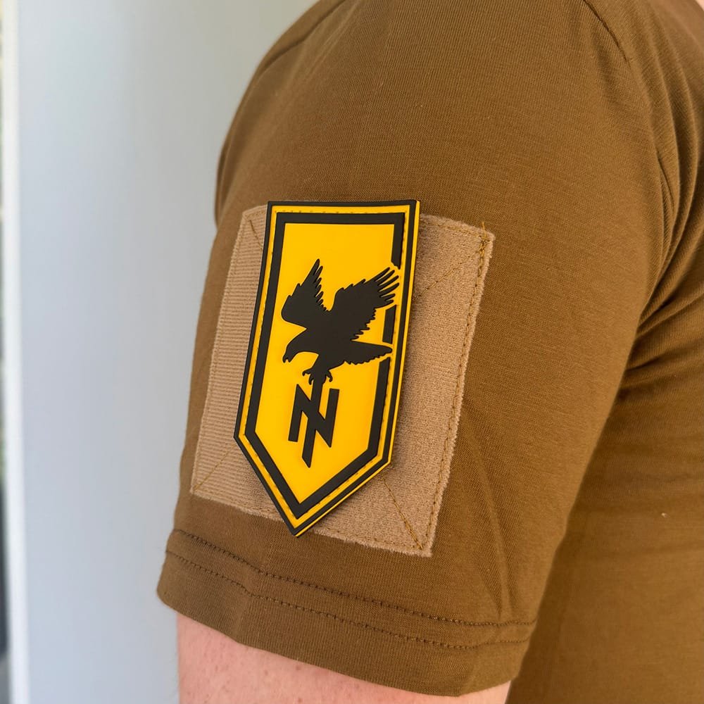 Малюнок орла, який несе Ідею Nації, вписано в обрис клиновидного шеврона, котрий несе ультраправий сенс.