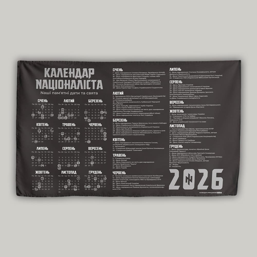 Календар надруковано на тканевій матерії у форматі прапору. Його зручно транспортувати та розміщувати – в кімнаті, лекторії чи бліндажі. Враховано історичні та сучасні дати, важливі для світогляду українських націоналістів.