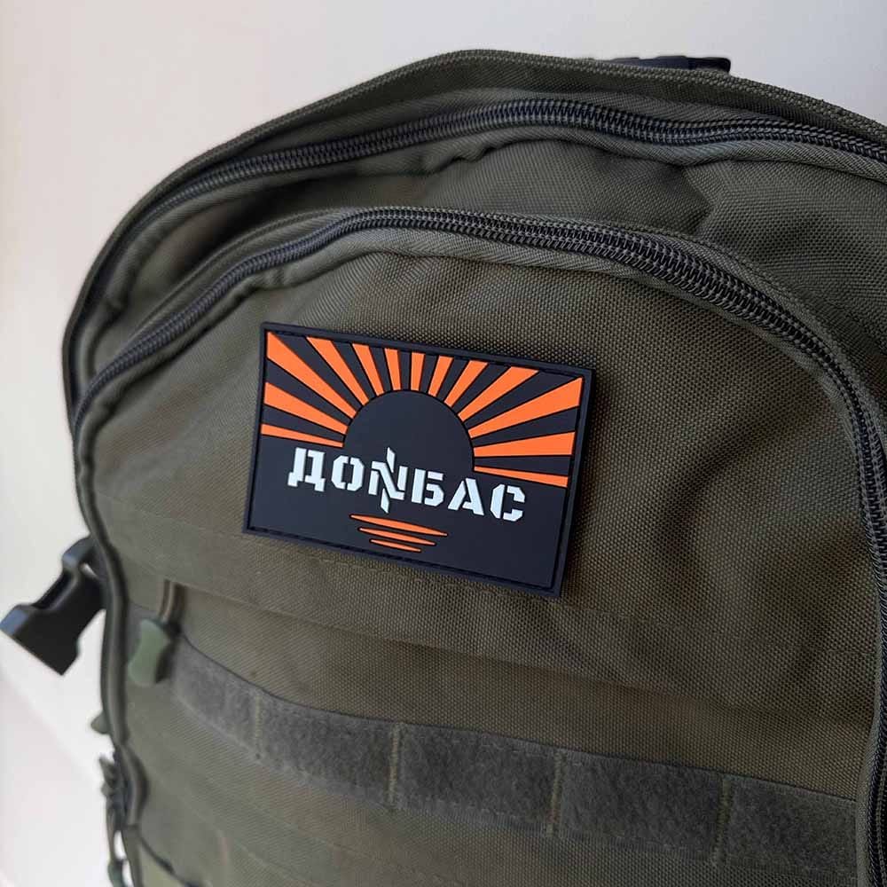 Патч стилізовано під кольористику футбольного клубу «Шахтар», а сама емблема відсилає на офіційну геральдику Донецької області України.